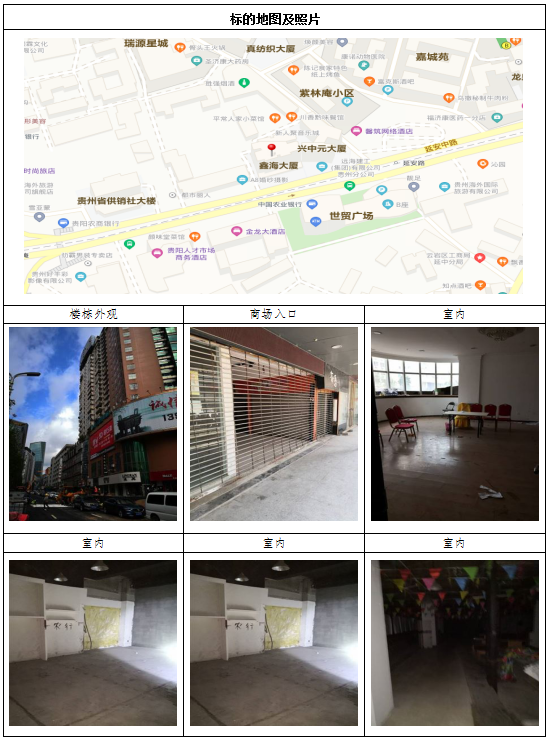 標(biāo)的位于貴陽市云巖區(qū)延安中路81號(hào)鑫海大廈1層35、36、48、49號(hào),2層16、17、50號(hào),該標(biāo)的總建筑面積為:159.73㎡,分?jǐn)偼恋厥褂脵?quán)面積分別為0.76㎡、0.42㎡、0.96㎡、0.95㎡、0.48㎡、0.49㎡、1.85㎡;地類用途:商務(wù)金融用地,土地使用權(quán)類型為出讓,土地使用權(quán)終止日期為2047年12月31日,土地所有權(quán)為國家所有;樓層:總層數(shù)27層,標(biāo)的位于樓宇總層數(shù)27層的第1、2層,層高:住宅商業(yè)層高3.5m,住宅層高2.8m;建筑結(jié)構(gòu):框架結(jié)構(gòu)。