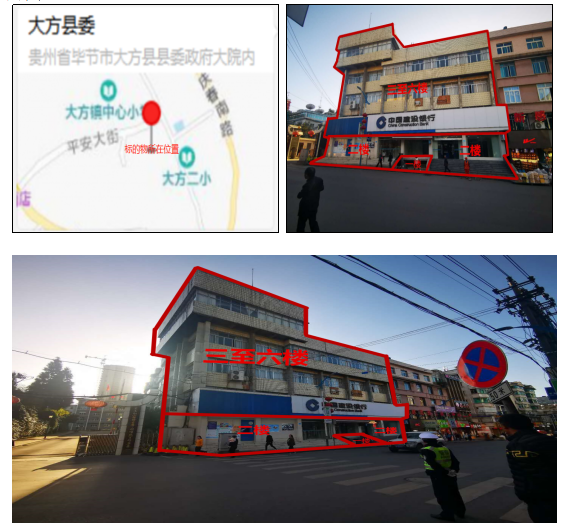 1、畢節(jié)市大方縣大方鎮(zhèn)南街1層至6層辦公用房,建筑面積1479.43㎡