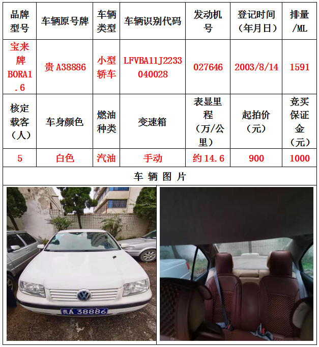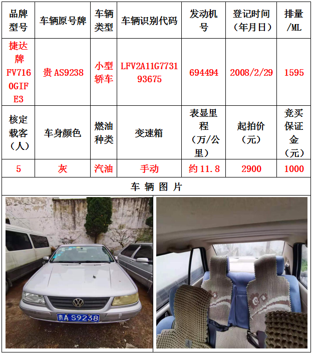 本次拍賣會拍賣的車輛共計10輛車,分別為帕薩特牌SVWZ183LJI小型轎車一輛、匯眾牌SH6530中型普通客車一輛、別克牌SGM6517小型普通客車一輛、別克牌SGM7161LE小型轎車一輛、寶來牌BORA1.6小型轎車一輛、捷達牌FV7160GiFE3小型轎車五輛(詳情見下文),為打包整體拍賣,不作拆分,整體起拍價:33900元,且只對標的現(xiàn)狀進行拍賣,不作任何質(zhì)量擔保。