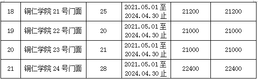 1.拍品1至21號(hào)標(biāo)的位于銅仁市清水大道銅仁學(xué)院附中旁,面積7——28㎡,租賃期3年(2021.05.01至2024.04.30止),交通便利,人流量大。