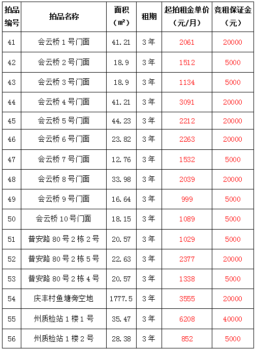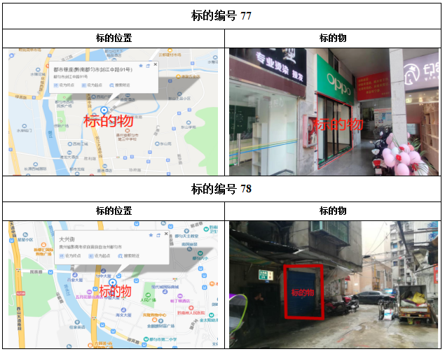 2021年1月28日下午14:00拍賣標(biāo)的共計(jì)38個(gè)標(biāo)的,其中:41—72號(hào)標(biāo)的目前均為租賃狀態(tài),如承租人參與競(jìng)租,其享有同等價(jià)位優(yōu)先購(gòu)買權(quán),其余73—78標(biāo)的為閑置狀態(tài)。