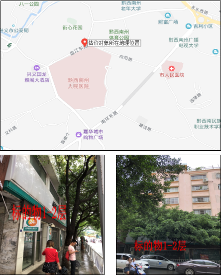 1、標(biāo)的物位于興義市盤(pán)江東路49號(hào)A幢第1號(hào)1-2層的綜合房地產(chǎn),標(biāo)的物建成于2005年,南面臨盤(pán)江東路,其余三面均臨多層建筑樓棟?;旌辖Y(jié)構(gòu),水電、生活燃?xì)狻⑾赖仍O(shè)施齊全。使用正常,維護(hù)狀況較好,普通裝修,地面鋪地磚,墻面及頂面刮瓷粉刷乳膠漆,鋁合金窗,防盜門(mén)、卷簾門(mén)、木門(mén)。