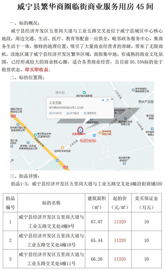 (一)威寧縣經(jīng)濟(jì)開發(fā)區(qū)五里崗大道與工業(yè)五路交叉處公租房4幢沿街商鋪3間,建筑面積:65.44㎡-67.07㎡。