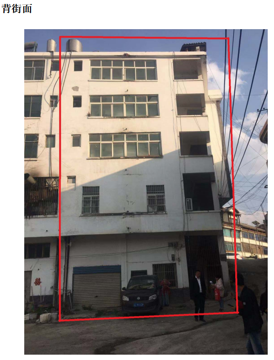 標(biāo)的描述:標(biāo)的有層差,當(dāng)街面為四層,包含三個門面,背街為五層,建筑位于威寧縣中水鎮(zhèn)居樂村老信用社,為混合結(jié)構(gòu),2005年竣工,周邊為臨街門面及自建房,及中水中學(xué)、中水鎮(zhèn)中水小學(xué)、中水鴻運酒店、中水信用社、鑫隆超市,周邊環(huán)境較好。該棟建筑物外墻刷涂 料,負(fù)一層地面為水泥清光地面,內(nèi)墻與天花刷白,卷簾門及鐵門,水電明裝;一樓內(nèi)墻貼磚,天花刷白,地面鋪地磚,鋁合金推拉門及鋁合金窗,水電暗裝;二-四層內(nèi)墻與天花刷白、地面鋪地磚, 鋁合金窗,木門、水電明裝。