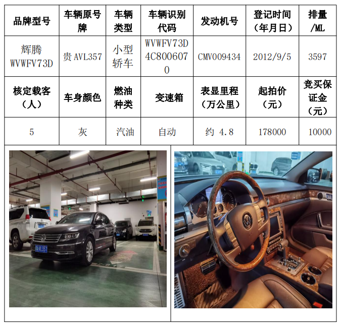 拍品編號(hào)1:輝騰WVWFV73D小型轎車(chē)一輛