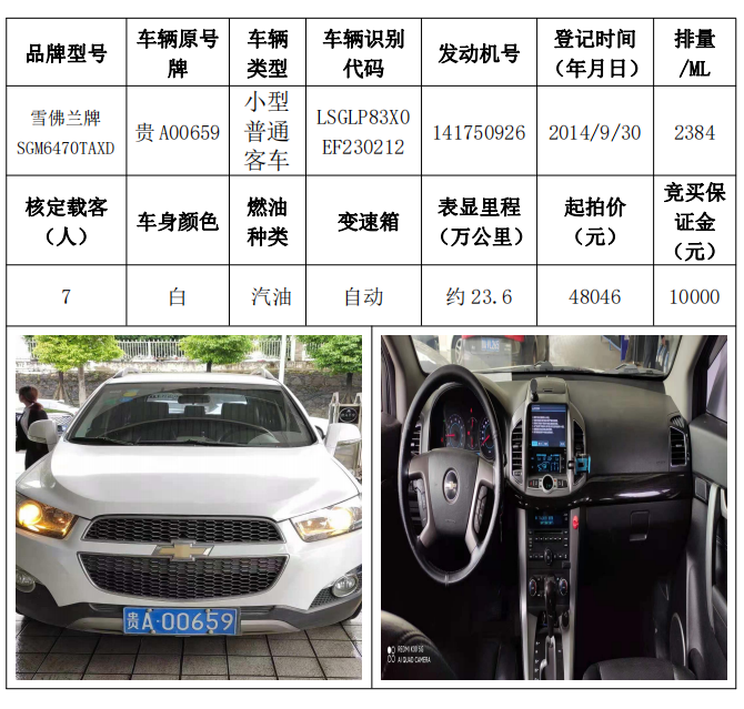 拍品編號(hào)6:雪佛蘭SGM6470TAXD小型普通客車(chē)一輛