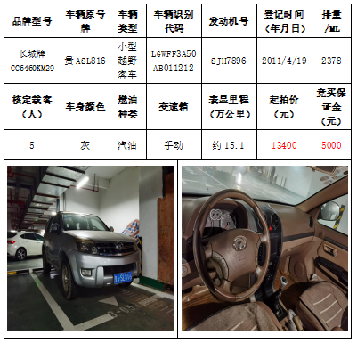 拍品編號(hào)4:長(zhǎng)城牌CC6460KM29小型越野客車一輛