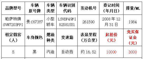 本次拍賣會的拍品編號6:帕薩特牌SVW7203FPI小型轎車原機(jī)動車登記證書遺失,拍賣成功后委托方將協(xié)助買受人補(bǔ)辦遺失證件完成過戶手續(xù)。