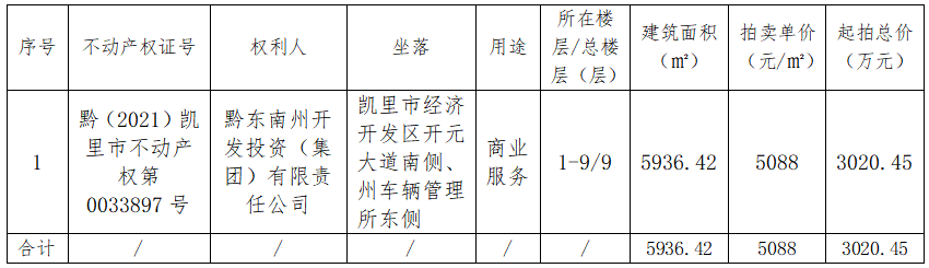 受黔東南州開發(fā)投資(集團(tuán))有限責(zé)任公司委托,我公司定于2022年01月06日(星期四)下午14:30時在黔東南州公共資源交易中心多功能廳公開拍賣以下標(biāo)的: