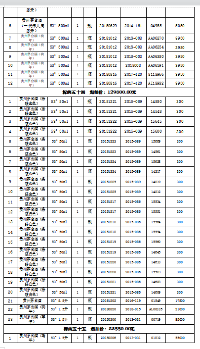 注:本場(chǎng)拍賣標(biāo)的經(jīng)過(guò)貴州茅臺(tái)酒股份有限公司鑒定為其公司生產(chǎn)。所有標(biāo)的按現(xiàn)狀進(jìn)行拍賣,競(jìng)買人自行判斷。報(bào)名后持報(bào)名成功短信進(jìn)入展示現(xiàn)場(chǎng)看樣,看樣時(shí)需提前預(yù)約,配合工作人員安排。競(jìng)價(jià)成功的買受人需公示期過(guò)后付款提貨。競(jìng)買人需到現(xiàn)場(chǎng)查驗(yàn),如未到現(xiàn)場(chǎng)實(shí)地看樣的競(jìng)買人,視為對(duì)本標(biāo)的實(shí)物現(xiàn)狀的確認(rèn),責(zé)任自負(fù)。成交后買受人需向拍賣人另行支付成交價(jià)2%的傭金。競(jìng)買人應(yīng)于2022年1月13日下午13:20時(shí)前入場(chǎng),遲到視為放棄此次競(jìng)拍。