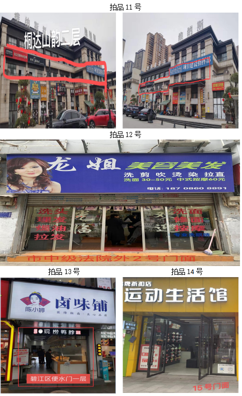 拍品14至22號標的:位于清水大道銅仁農(nóng)校旁,地理位置優(yōu)越,屬于黃金大道。附近有大專、中學、小學、幼兒園等,教學配套齊全;擁有眾多小區(qū),人口流動能力強,固定人口較多;周圍有超市、商場,人口流動性強。地理位置優(yōu)越,屬于臨街門店,升值空間較大;地區(qū)基礎設施完善,公共交通、公共停車設施的增加,使該地升值空間進一步增大;建筑結構:磚混,面積:27.6㎡至42.4㎡不等(具體面積見上表),租賃期3年(具體日期見上表),保養(yǎng)情況:較好。