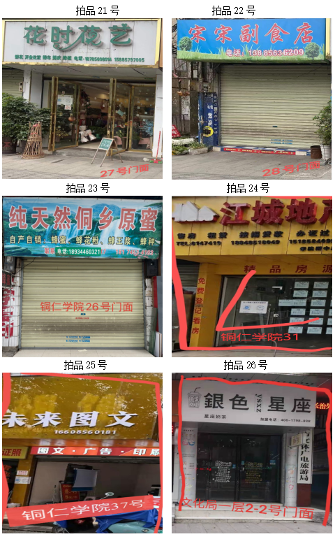 25、清水大道銅仁附中對面(商鋪編號:銅仁學院37),面積:27.5㎡,租賃期:3年,起拍價:22400元/年,競租保證金:22400元;