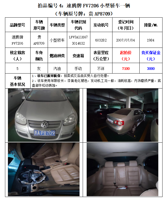 七、報名需交納競買保證金(車輛3000元、房產20萬元)資料服務費300元/套(資料服務費不退)。意向競買人應在規(guī)定報名時間內交納競買保證金、資料服務費到我公司指定銀行賬戶,取得意向競買資格。