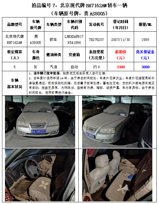 6、北京現(xiàn)代牌BH7162AW轎車1輛;