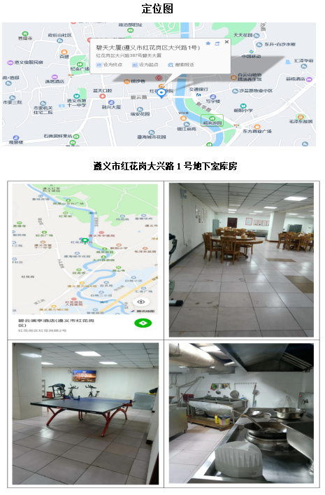 1、貴州省遵義市紅花崗區(qū)中華南路丁字口遵義大飯店主塔樓7層2號(hào)辦公用房(總建筑面積:375.23㎡)。